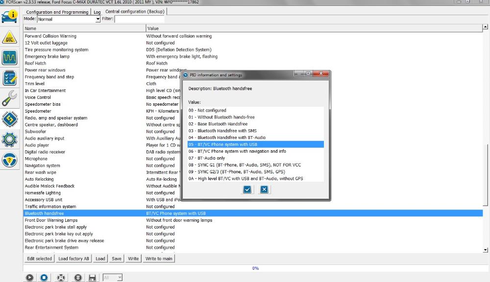Ve Forscanu sem v centrální konfiguraci kontroloval Bluetooth Handsfree, které je na hodnotě "05 - BT/VC Phone system with USB" což by mělo být taky správně.