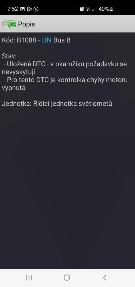 Dnešní diagnostika potvrdila, že chyby tam jsou, bohužel. Teď teda nevím, jestli má smysl zkoušet jinou řídící jednotku, nebo rovnou shánět světlo. Po vymazání zůstala zatím jen chyba B103D - řízení pravého světlometu.