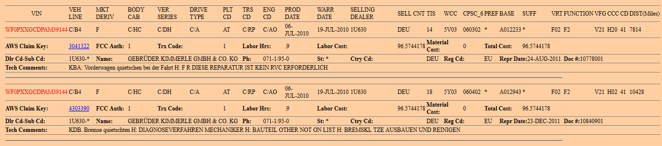Může mi někdo dekódovat 2 záruční záznamy u tohoto Mondea? VIN: WF0GXXGBBGAY42962