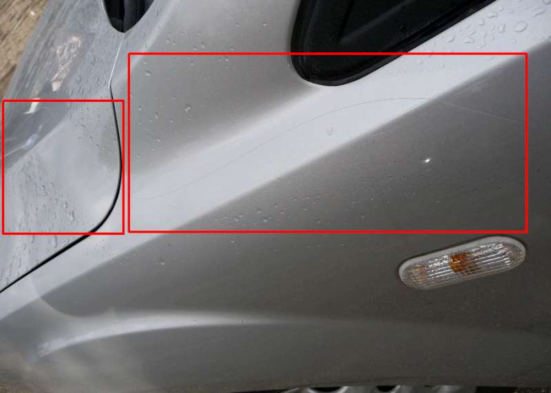 To jak dopadl je patrné z přiložených fotek. Rýha se táhne od zadního světlometu, přes zadní i přední dveře, sloupek u řidiče a končí na krytu motoru.