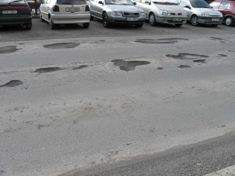 Přikládám fotografie z našeho sídliště, kde jsem letos v jedné této díře praskla zadní tlumič, když se nedalo jinak jak jí projet
