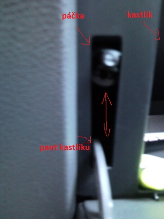 Je umístěna v levém prostoru pro pant,akorát pant jezdí jen dole,tak je výřez asi udělán kvůli té páčce.