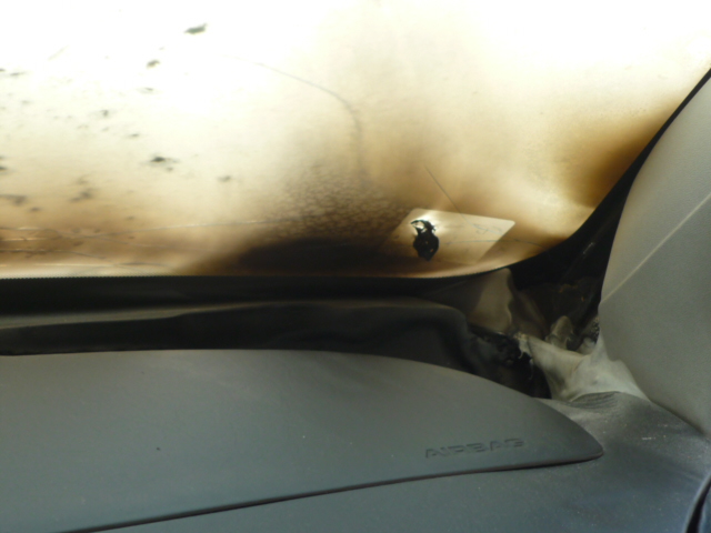 V motorovém prostoru shořely kabely, hadice, plasty na povrchu motoru, klínového řemenu, klimy, apod. Ohnisko bylo asi u pravé přední lampy. Interier kabiny byl zakouřen, zřejmě dírou u pravého sloupku, viz foto - je možné dostat smrad z interiéru?