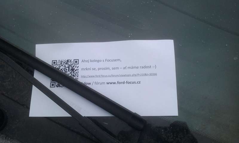 Šoupni mu tam za stěrač lísteček, ať už konečně víme na čem jsme. Dyť je to hotová detektívka