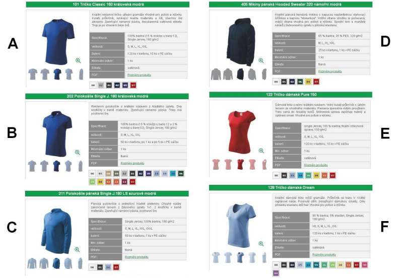 U každého trika jsou napsány i čísla barev, které je možné objednat.