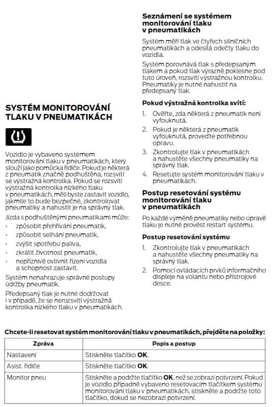 Při tel. dotazu na Forda mi bylo řečeno, že je to tím, že tam musí být ventilky s kontrolou (TPMS). Současně mi bylo řečeno, že ta legrace i s montáží bude stát skoro 5tis. Kč. Což se mi tedy moc nechce. Potřeboval bych vědět, kdybych se přes zimu na to "vyprd", tj. nechal bych blikat tu kontrolku, může to "nějak" vadit, popř. čemu? Může to mít vliv např. na pojištění při havárii, záruce na vozidlo apod.? Máte někdo s tím podobnou zkušenost?
