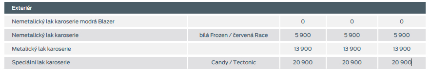 Budu si kupovat nový model Focuse r. 2015 a překvapila mě omezená nabídka barev. Mají jich málo a ještě jsou pěkně hnusný. Jediná co by se mi líbila, tak stojí 21 tis a to jim nedá. Proto uvažuji o základní modré Blazer, která je v ceně vozidla. Případně bílou, která již stojí 5 tis