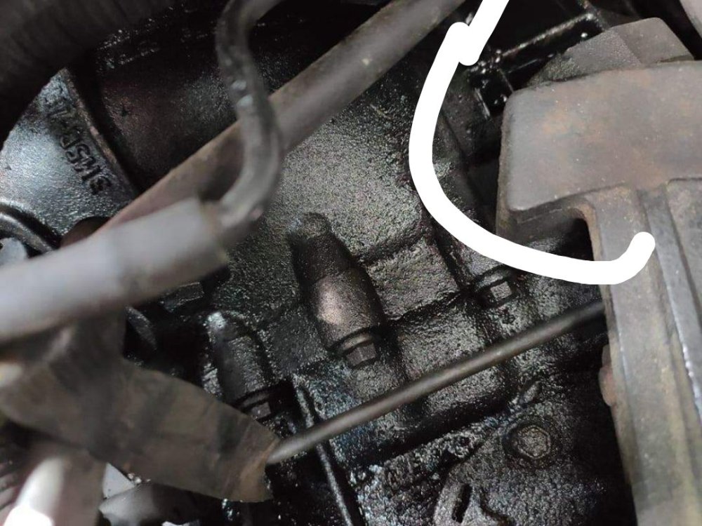Mikrodírka na vysokotlaké trubičcce vedení nafty k prvnímu válci (strana u spolujezdce). Moc hezký gejzír. Tak a teď co s tím, na konci týdne...