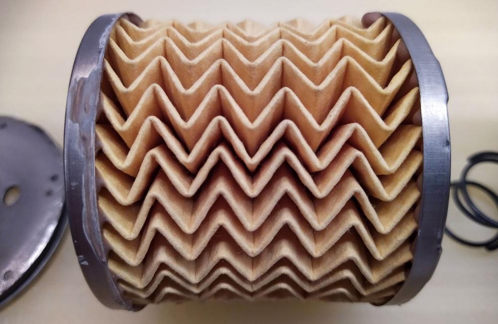 Zvláštností filtrů Purflux (od něhož tento filtr Bosch pochází) je filtrační papír skladaný do W. Výrazně zvyšuje filtrační plochu.