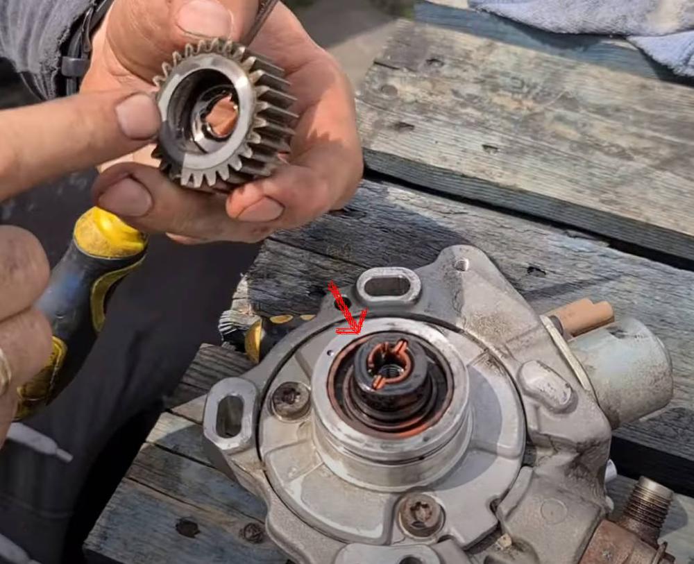 Muj dotaz zni: zda je v nejakem beznem servisnim postupu i sundani toho zubateho kola a nasledna vymena simeringu (sipkou oznaceno na fotce): Nebo se na to zubate kolo proste za zadnych okolnosti nesaha a meni se jen ten venkovni O krouzek ?
