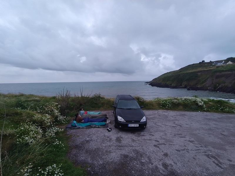 Samotné Irsko po pár ujetých kilometrech a dívání se kolem bylo hodně příjemné a hezké. Mě osobně trochu připomínalo Finsko - všude čisto, klid, pořádek, celkem nízký provoz a jejich tráva je brutálně zelená - to jsme si říkali, že jí snad musí natírat barvou, že to ani není možné. První noc jsme zakotvili u moře. Původně malinké odstavné parkoviště u útesů, dál se nám už jet po tmě nechtělo a místo bylo poměrně daleko od obydleností, takže jsme zaparkovali, povečeřeli kousek od pláže, něco popili a ulehli do spacáků pod širákem hned vedle pluska a díky šumění moře a trocha promlilím,jsme odpadli celkem rychle. Abych Irsko trošku zkrátil, za zmínku stojí určitě města Cork a Limerick. Kousek od Limericku jsme se jeli podívat na Moherské útesy - jsou vážně hodně vysoké a je z nich perfektní rozhled. Další den jsme zakotvili ve městě Galway, kde se nám líbílo a chtěli jsme zažít to co vídáme na youtubu - pravou irskou hospůdku, kde se večer pije, zpívá a tančí. Takže jsme sehnali přes booking perfektní ubytko. Určitě dopopručuju tyto místa (kdyby jste sem někdy zabloudili), kde jsme byli : Mary Mullen´s - zde jsme měli oběd a vše do puntíku naprosto luxusní, Mama Rich - večeře v asijském stylu, hned vedle Barr An Chaladh - zde se hrály a tančily typické irské písně už během bílého dne, bohužel tam bylo tak plno, že jsme jen nakoukli, no a zde dvě hospody, kde jsme trávili večer za doprovodu irských skladeb - Jack J. Foley´s a An Púcán. Následně zbývala cesta k Dublinu,kde jsme ještě navštívili nějaká místa, památky, parky, přespali naposledy pod širákem za celkem silného větrného doprovodu. Ráno jsme vyrazili do Dublinu, kde jsme trávili celkem asi půl dne, prošli si zajímavá místa, uličky, hospody - kde se samozřejmě také hrálo. K večeru nás čekalo přemístit se do přístavu na trasu Dublin - Holyhead ve Walesu. Proběhlo ještě poslední tankování a hurá směr trajekt. Naštěstí se nám všem ulevilo na duši potom, co jsme viděli plnohodnotný trajekt, ne tu kocábku, se kterou jsme na ostrov dopluli. Při plavbě jsme našli příjemná místa, tak jsme odpočívali a chvíli sledovali olympiádu - respektive asi tak 10 minut, než jsme zjistili že existuje olympiáda v break dance - to jsme se na sebe všichni podívali pohledem a otázkou - to si snad dělají srandu...No radši jsme zahájili spánek.