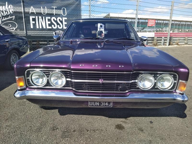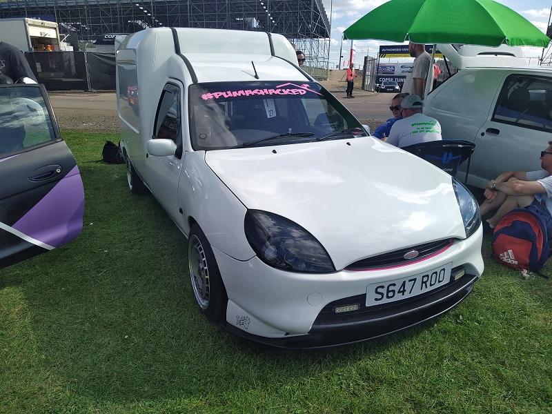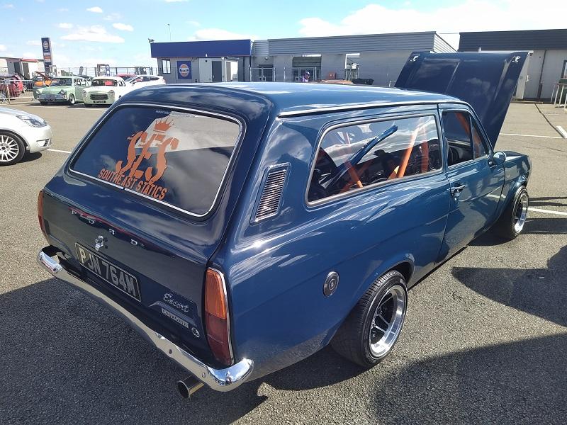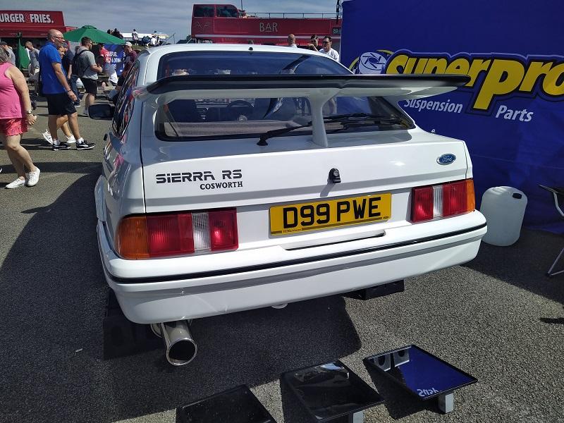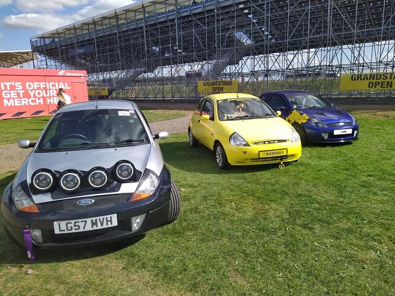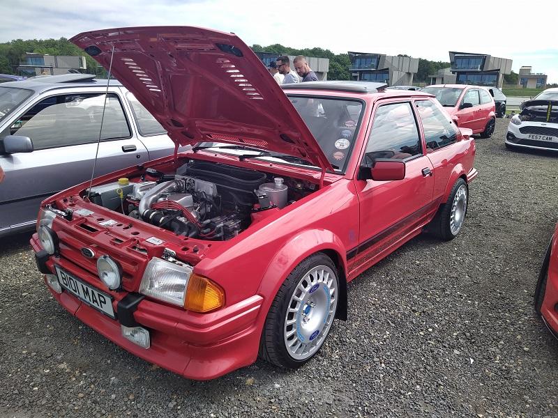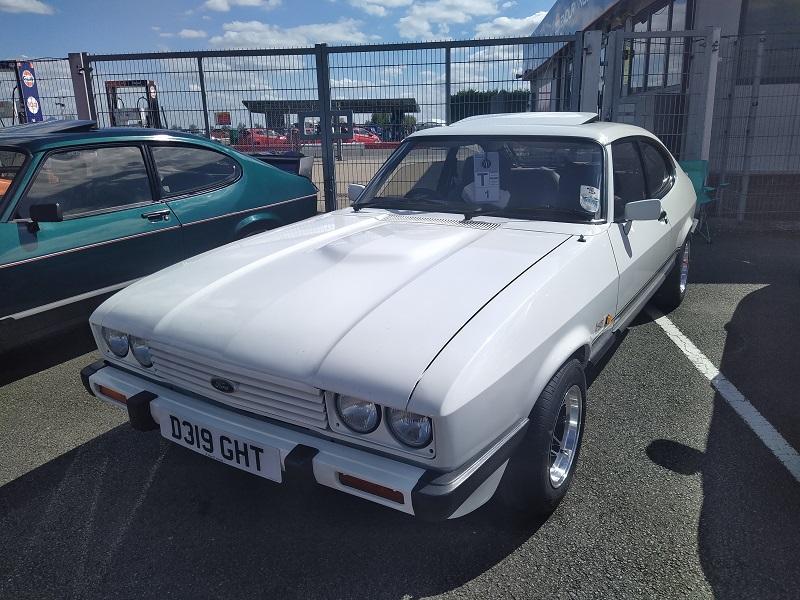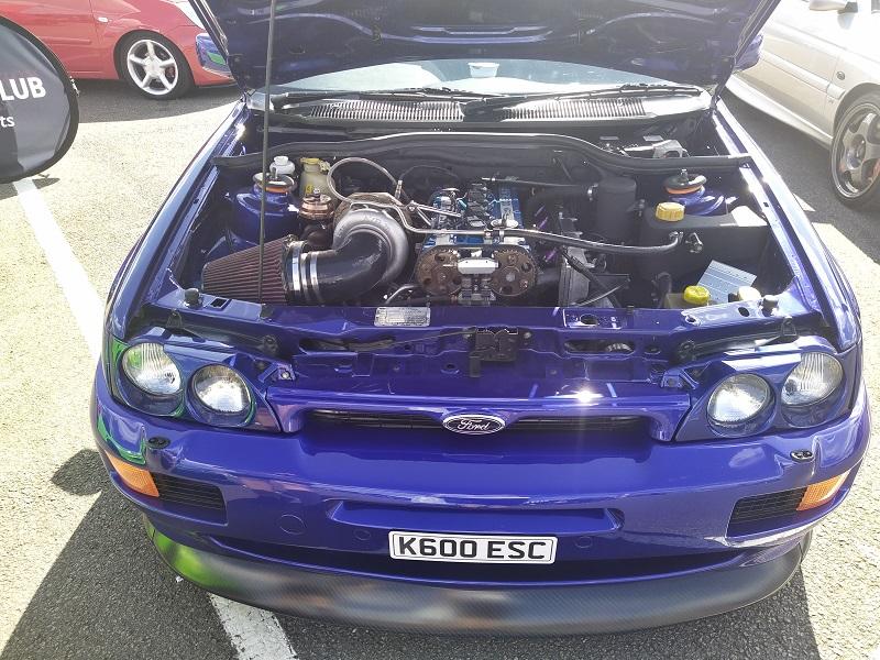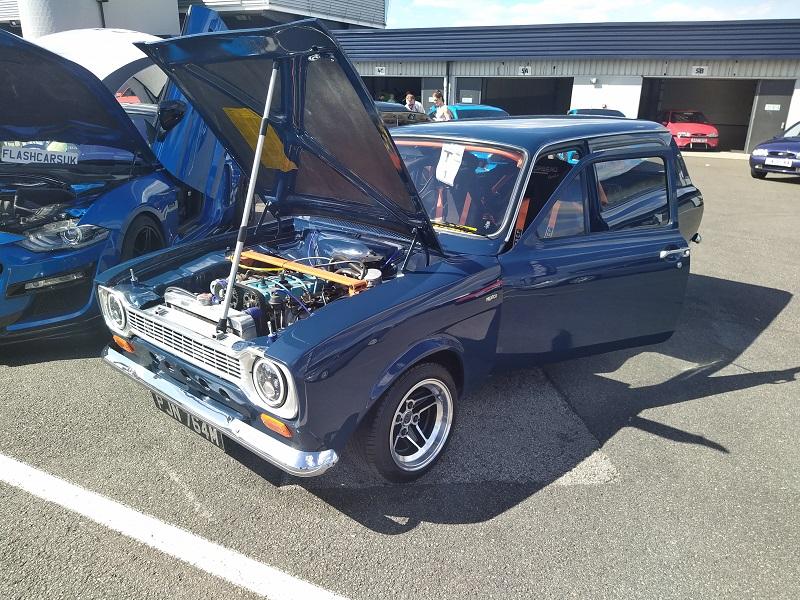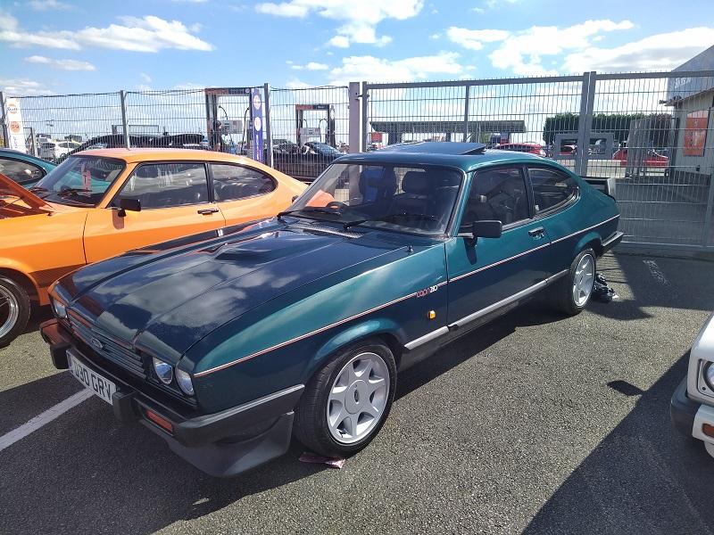 Už kousek od naší plochy, jsme viděli obrovské množství Fiest různých generací - je pravdou že ST180 je opravdu ve velkém počtu v anglii pořádně oblíbená a sekunduje jí její nástupkyně ST200. Samozřejmostí byly Focusy ST225 - také ve velkém počtu. Obecně, letos to byl ročník, kdy největší zastoupení co se počtu modelu týče, byla právě Fiesta. Procházíme kolem další tribuny a vystavované plochy. Hned z dálky do očí bijící - Escort RS Cosworth WRC tovární homologační speciál se "čtyřokem" na kapotě...Hned nám padla brada na začátek...o kus dál stojí první Ford Capri s krásným řadovým šestiválcem, vedle něj Cortiny poslední generace. Nevěděli jsme, kam dřív s očima - protože za auty byl plot a za ním dráha, takže chvíli jsme obdivovali stav a stáří aut a najednou hlavy nahoru a dívat se na ty zběsilosti na dráze...