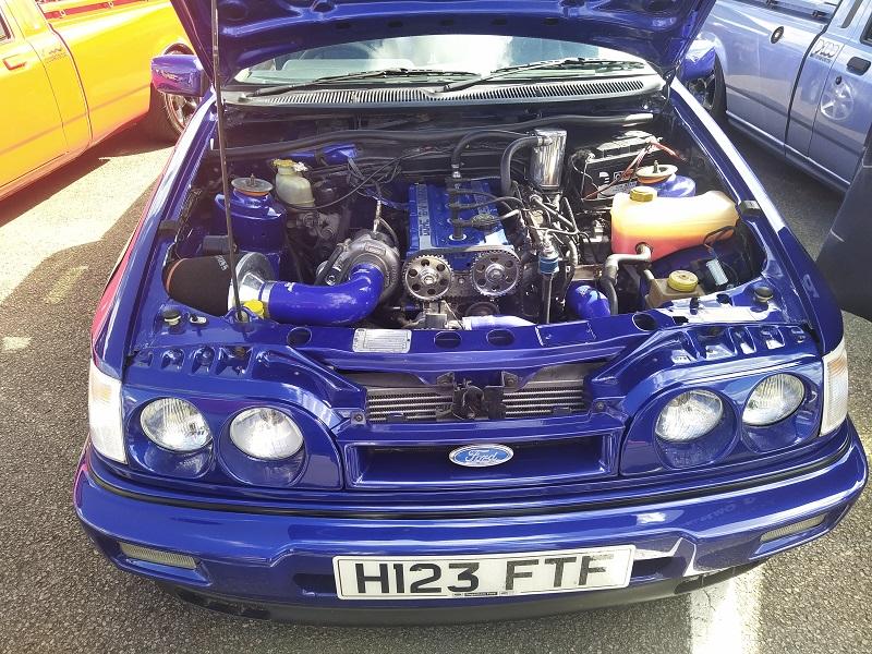 Procházíme se dále - aut bylo tolik,že jsme nevěděli, kam se dřív dívat. Samozřejmě, že v hledáčku jsem měl to nejoblíbenější a to Sierru RS500 Cosworth v sériovém stavu a byl jsem zvědavý, jestli najdeme letos i nějako závodní. Asi mám na to auto opravdu "čuch" , našel bych ho snad i po tmě. Našli jsme je na vyvýšené ploše - dvě krásné RS500 za sebou - černá a bílá. Doslova pastva pro oči, auto, které zbožňuju, chci a kterého se neskutečně bojím. Stepoval jsem kolem nich opravdu dlouho, ale bylo potřeba se pohnout dál, protože na objevování toho bylo stále moc. O kousek dál pro změnu "jen" dvojice RS Cosworth v černé a krásné Moonlight modré barvě. Dále zde byla dvojice Escort RS Cosworth. Opravdu nádherné byly Fiesty XR2 nebo Escort RS Turbo. O kus dál byla zajímavá sekce, kterou jsme před dvěma lety neviděli - byla zde sekce off roadů - na co si vzpomenete od Rangerů, přes F150tky a dokonce i od výkonostních úpravců - upřímne, je zvláštní vedle toho stát a dívat se na ty monstra.