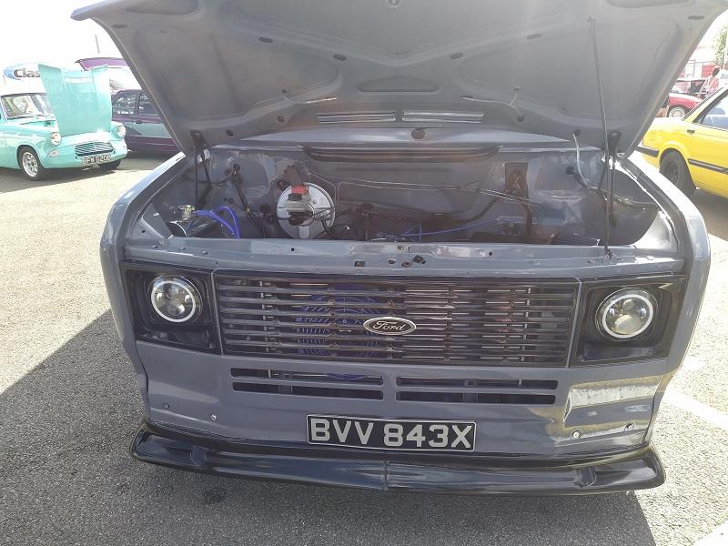O něco dál od této zvrácené šílenosti byla její oběť z trati - Ford Escort RS Cosworth v okruhové úpravě. Naproti stály dvě krásné Granady v červené a žluté barvě, obě generace, které vozily šéfa CI5 Cowleyho. Jen pár kroků od nich stály další dva skvosty, které jsem ještě nikdy neviděl - Granada kombi - jednak byla v naprosto perfektním stavu, a asi chápu, co bylo Sierrám a prvním generacím Mondea v kombi verzích vzorem, opravdu pořádná loď s velkým kufrem. Tím druhým skvostem byl Transit MK2 v obytné verzi s poctivým V6 motorem - na to jsem hleděl hodně dlouho - fakt parádní. Za rohem toho všeho byl stejně jako před dvěma lety (ikdyž trochu přemístěn) dvojřad Focusu RS MK1. Počítat se nám to nechtělo, ale taková stovka by se našla, nehledě na fakt, že několik RS bylo různě parkováno mimo tento hlavní dvojřad.