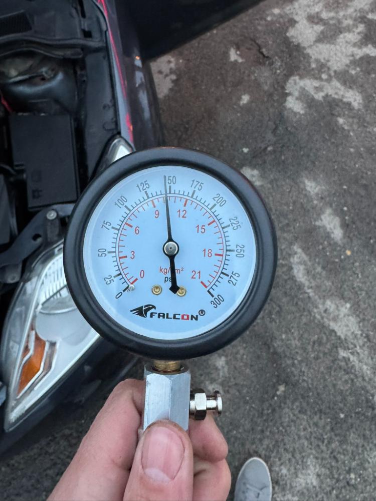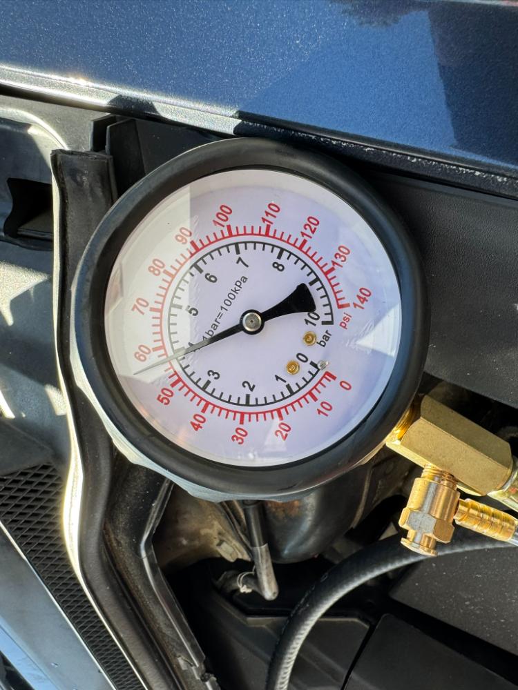 Nyní jsem se pustil do palivové soustavy. Změřil jsem tlak po otočení klíčkem do polohy II a ukazatel vyletěl na 3,9 Baru. za jízdy nic nekmitalo a i přes kritické otáčky 2000 se na tlaku paliva nic nezměnilo.