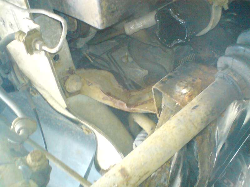 - pak už jen zbývá povolit všechny šrouby co drží napravnici ke kastli a spustit dolů.Teda pokud si to už neudělal kvůli těm šroubům co drží řízení k nápravnici jako já.