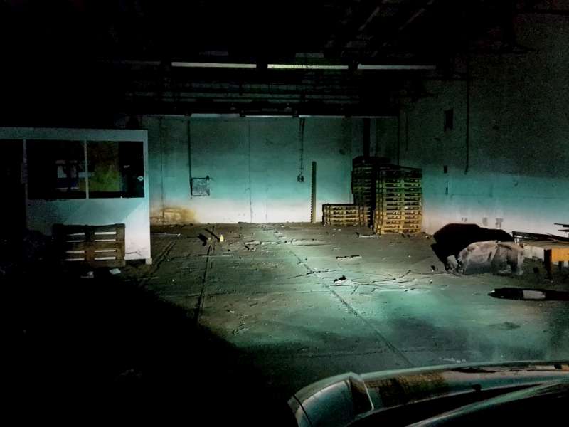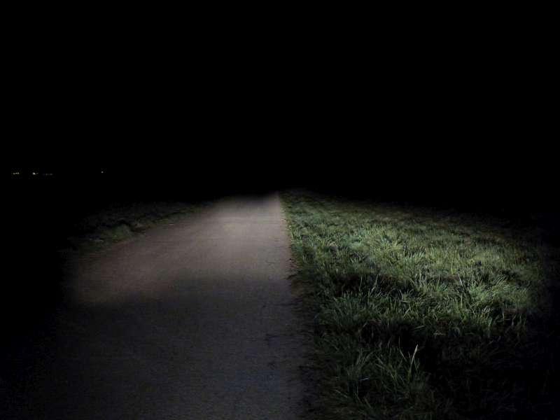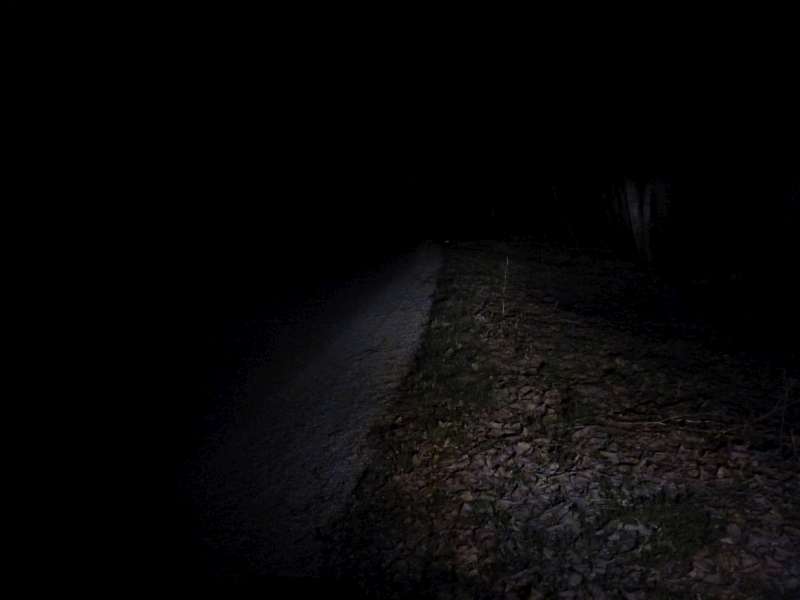 Jasne viditelne, ze svieti len pred autom, kde je prepaleny bod a vo vacsej vzdialenosti tma.