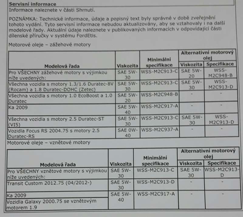 Pozadovane specifikace oleju...