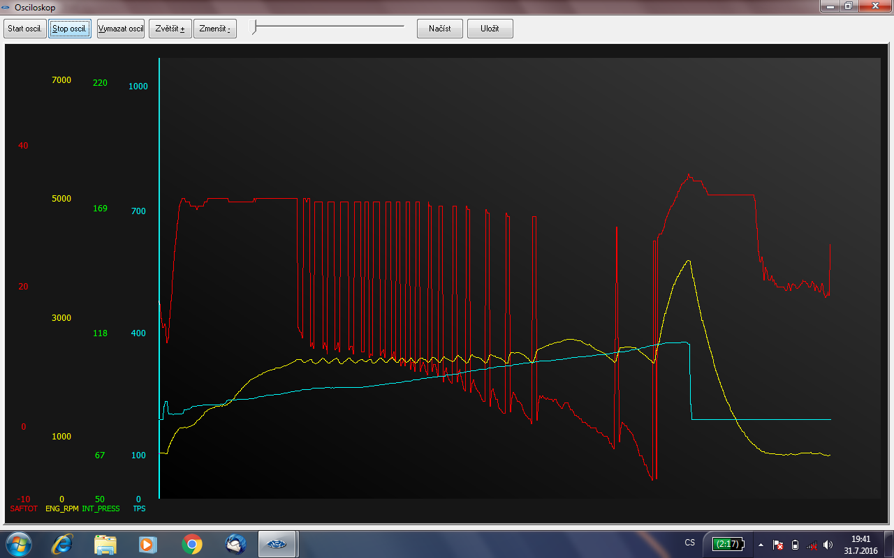 Mně při těch mých problémech s rozvody (viz to video) lítal předstih fakt extrémně sem tam mezi hodnotami kolem 35 stupňů a kolem 0, občas i do mínusu. To v tom tvém případě je leda trochu vidět na tom třetím obrázku, ale současně tam není moc vidět, že by ti nějak výrazně kolísaly otáčky, ty během toho pořád celkem plynule stoupají. Mně mezi těmi zhruba 2200-2800 otáčkami prakticky přestal reagovat plynový pedál, předstih lítal nahoru dolů a otáčky stály na místě a jenom kolísaly sem tam, až pak po překonání toho kritického pásma najednou otáčky prudce vystřelily na 3000 (a víc). To tam u tebe v těch grafech nikde nevidím.