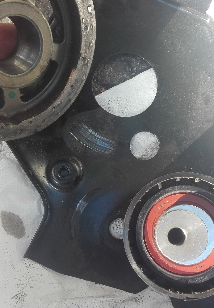 To máš síce pravdu, ale hneď pod ním je remenica ktorá je olejom premazávaná, jedine čo ich oddeľuje je tesnenie. Preto neviem či náhodou nebolo toto tesnenie poškodené počas toho, keď kladky a kryt o seba treli. Predsa len to trenie pri otáčkach motora muselo spôsobiť vibrácie toho krytu a ako bol uchytený, tak sa to určite prenášalo aj na iné časti čo mohlo spôsobiť ich poškodenie a vznik vôlí, cez ktoré by sa teoreticky tie kovové čiastočky mohli dostať do spodného krytu a do olejového systému.