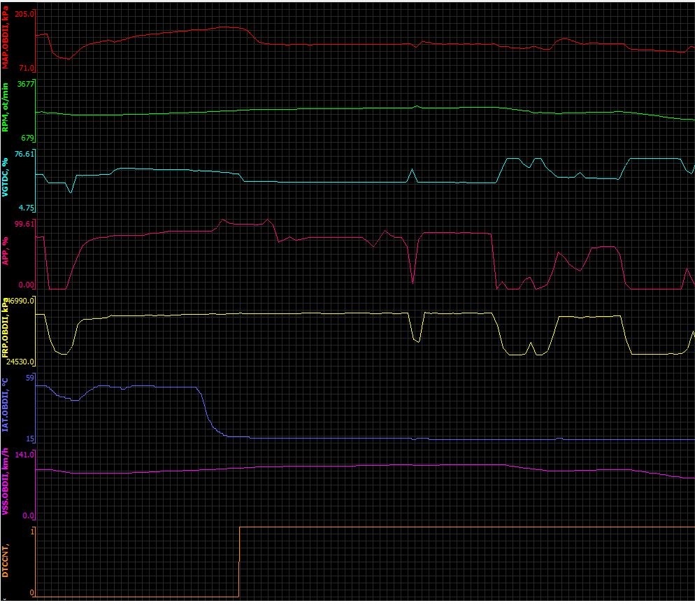 Zdravím, poslední dobou mi diagnostika ukazuje chybu P0299 - nedostatečné přeplňování turbem. Když chybu smažu chvili to zas jezdí normalně. Posledně jsem jel po dálnici v stoupání v "kolone" cca 105km/h a když jsem chtěl zrychlit tak zmáčkl plyn. pedál na 92%. V ten moment auto jakoby ztratilo výkon (tah). (grafy z diagnostiky v příloze). Od momentu kdy se vypíše chyba auto jakoby omezí plnění turbem (potvrzeno i na diagnostice za jizdy) + z diagnostiky vyplynulo že s chybou spadla teplota nasavaneho vzduchu z 50° skokově na 18°. Jinak mi turbo dává max. absolutní tlak z MAP cca 200 kPa (myslím si že je to celkem málo). Ventil N75 jsem dával před 14 dny nový, hadičky od N75 se zdají více méně v pořádku (zítra mi bude kamoš zkoušet ještě podtlakem). Navíc jsem si všiml že kolem turba mam saze - trošku to čudí v přírubě turba když pustím plynový pedal nějak na 2300 ot/min. Poradíte někdo na co bych se měl zaměřit aby můj focus 1.6 TDCI 80kw rok 2008 opět jezdil tak jak má?