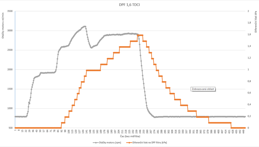 je to záznam z bráchova 1,6 TDCI to auto má problém (jako všechny už z výroby) s DPF, turbem apod. Ale přijde mi divné, že diferenční tlak je nějaký zpomalený, oproti otáčkám, nepřijde vám ? Chápu správně, že podle tlaků je čistý ? Tento graf jsem zaznamenal pomocí FoCOM a hodil do excelu. Díky.