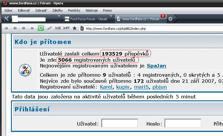 Mam problem ode dneska s prihlasenim na forum. Pouzivam Firefox 3.0.9 a dneska se mi stalo, ze to po me chtelo prihlaseni (normalne jsem automaticky prihlasenej pri vstupu). OK, prihlasil jsem se, ale nez se to vratilo zpet na forum tak me to vyhodilo a znovu jsem byl neprihlasenej. Ted jsem se nalogoval pres explorer (resp. doplnek ve firefoxu IE tab) a normalne to funguje. Provadela se nejaka zmena, ktera neumoznuje prihlaseni ve Firefoxu?