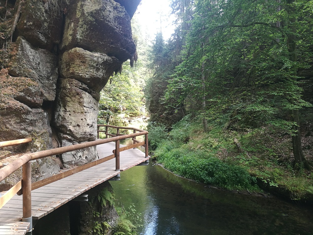 Schválně jsme zvolili opačný směr a to ze dvou důvodů. Nešli jsme s davem a stoupání na Prav. bránu bylo mírné..rozprostřené do cca 6-8km. Místo z Hřenska (park.) je krpál 4km až na bránu