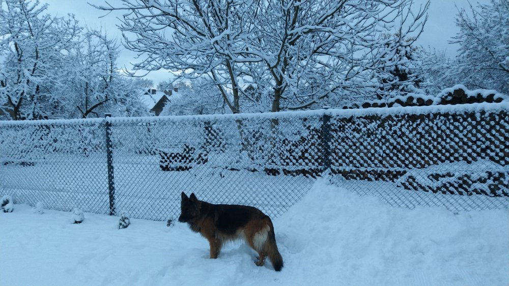 Tady už to taky začíná být bílé, takže z práce dřív a jdeme sáňkovat