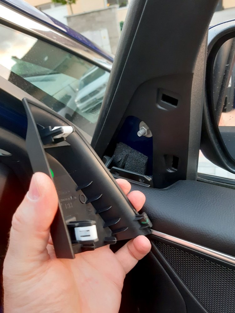 Nejprve je potřeba oddělat 3 plasty - trojúhelníček nad obložením jde velice lehce.