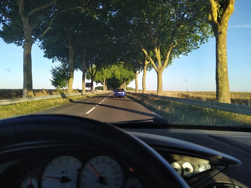 Po pár čůracích a občerstvovacích zastávkách jsme proházeli pořadí. Mě střídal Mates a brácha šel ke Kubovi do auta. Zanedlouho jsme projeli hranice ve Franicii. Úkol byl jasný - dojet co nejblíže k Paříži a najít někde místo na spánek. To se nakonec povedlo,takže celodenní ježdění jsme završili v malém lesíků u pár panáků slivovice, vína a piva.