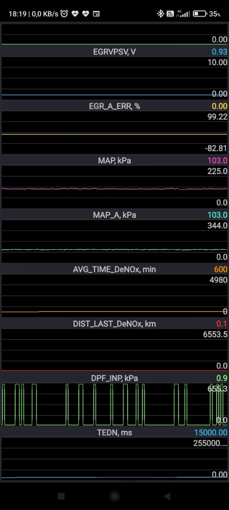 Prostě to hapruje pořád stejně jako s původním čidlem, na ty ostatní PIDy v obrázku nekoukejte....nejde mi do hlavy když je tam jen jedno čidlo, jaktoze diferenciální tlak to měří normálně (tady na tom screenshotu to není)i hodnoty vypadají normálně i ve chvíli kdy tam skočí těch 655 kpa na vstupu do DPF. Začínám podezřívat ECU