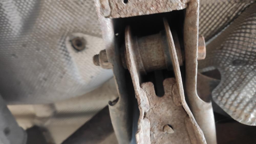 Tak jsem pod to dnes vlezl. Nakonec šlo ven celé podélné rameno, protože lisovat cokoliv v ose pod autem nejde. Stihl jsem jen jeden silentblok podélného ramene, je to strašná drbačka. Naštěstí šlo povolit všechno, co jsem povoloval.