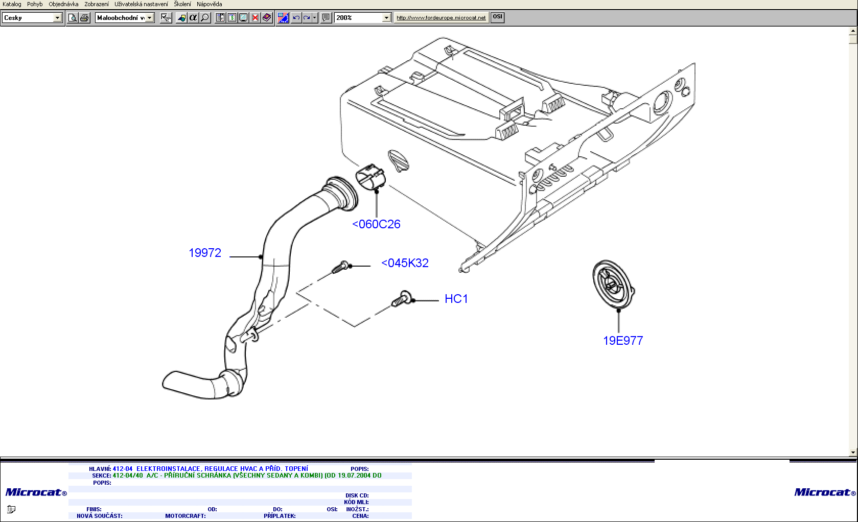 Zdravím, mám na svém fofo II chlazení schránky .Do schránky je napojena jedna trubka která se připojuje na levé straně ventilačního zařízení za výparníkem.Po demontáži plastu na středovém panelu na straně spolujezdce by měl být vidět otvor o velikosti asi tak 4cm, kousek od výtoku vyparníku do kterého je trubka zasunuta.Na microcat je chlazení vyobrazeno ze tří dílu a to z trubky ,redukce a výfuku do schránky.Cena trubky bude orientačne kolem 800 kč.