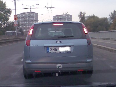 Jel jsem chvíli za ním po okruhu (Sokolská) a pak kousek směrem na Pardubice (Rašínova). Za volantem chlapík asi kolem 50let. Hradec je plný Focusů, ale tohle byl první klubový, kterého jsem potkal.