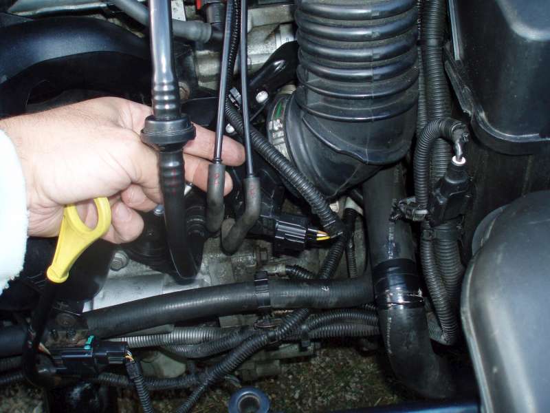 hned u vzduchového filtru. V tom místě, kam ukazuješ (u alternátoru) není