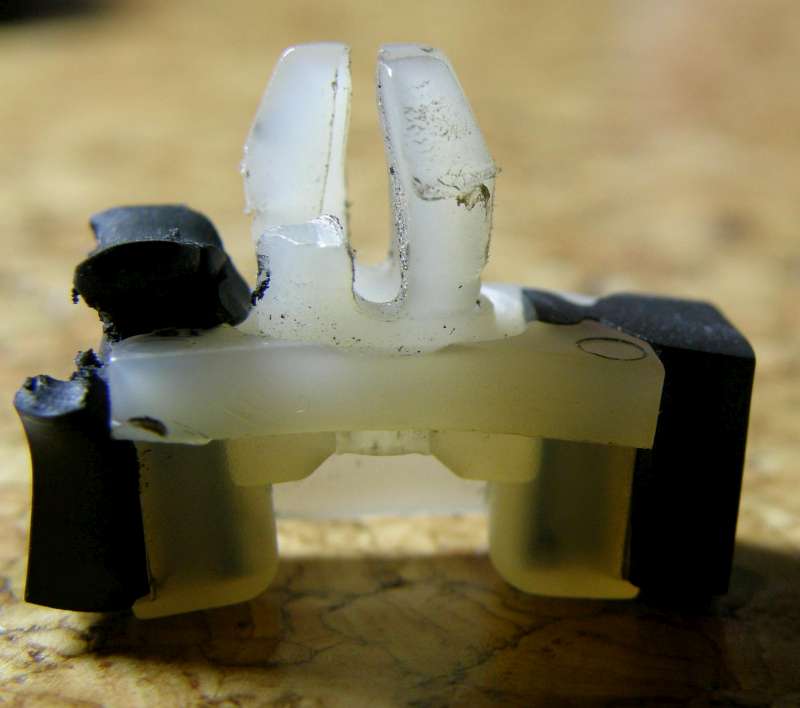 Délka = cca 20 mm, šířka = cca 10 mm, výška = cca 15 mm, souhlasím že by to mohl být asi držák nějakýho drátěnýho táhla a za ten konec s ulomenou packou to asi bylo někde do něčeho zacvaknutý. Jeden gumový konec je jak nový a ten druhý je úplně rozmáčknutý. Ale to bohužel neřeší otázku kam to patří.
