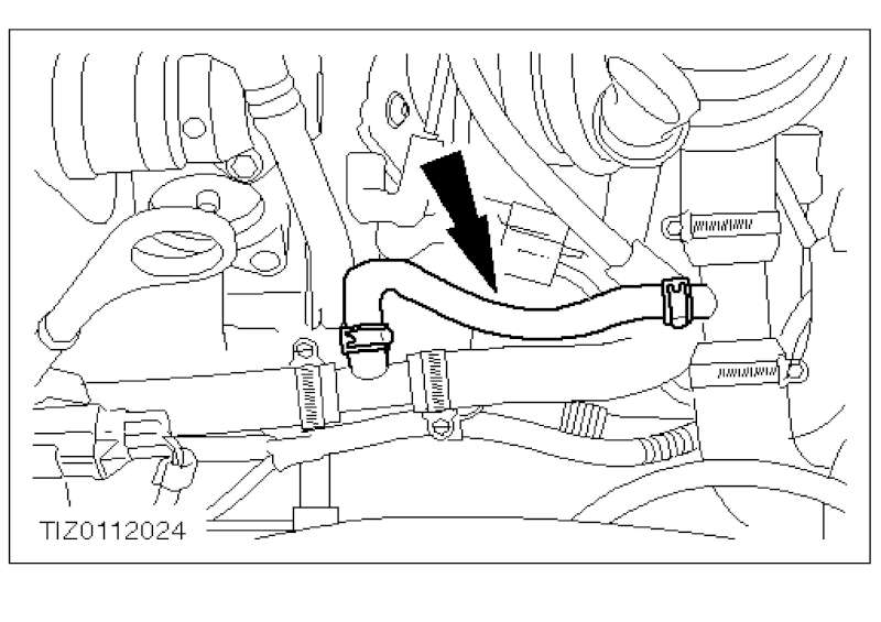 l Anschluss - Kühlmittelauslass prüfen, um sicherzustellen, dass der obere Schlauch und der Zufuhrschlauch - Heizung nicht verstopft sind.