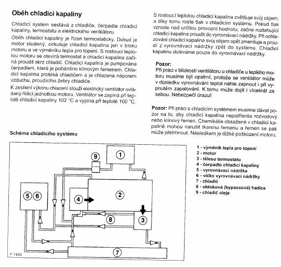 Vodni pumpa funguje, jinak by se motor brzo prehral.