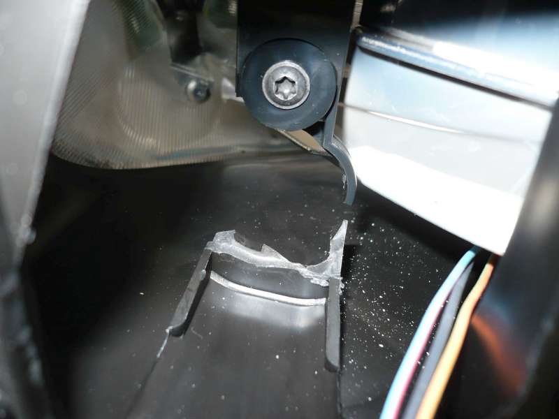 na zem. Taky jsou utržené ty plastové výstupky na spodní přední hraně světla, které zapadají do dírek směrem k nárazníku.
