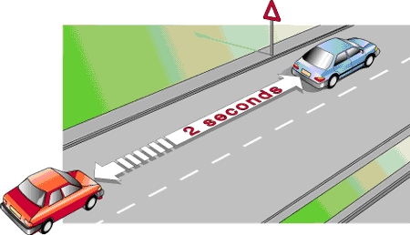 Dodržujete bezpečnou vzdálenost za vpředu jedoucím vozidlem. Nezapomeňte, že bezpečný odstup roste se zvyšující se rychlostí. Minimální vzdálenost od vpředu jedoucího vozidla je přibližně rovna vzdálenosti, kterou ujedete aktuální rychlostí za 2 sekundy. 2 sekundy je přibližná doba, za kterou začne Vaše vozidlo efektivně brzdit. Nepodceňujte tuto vzdálenost!