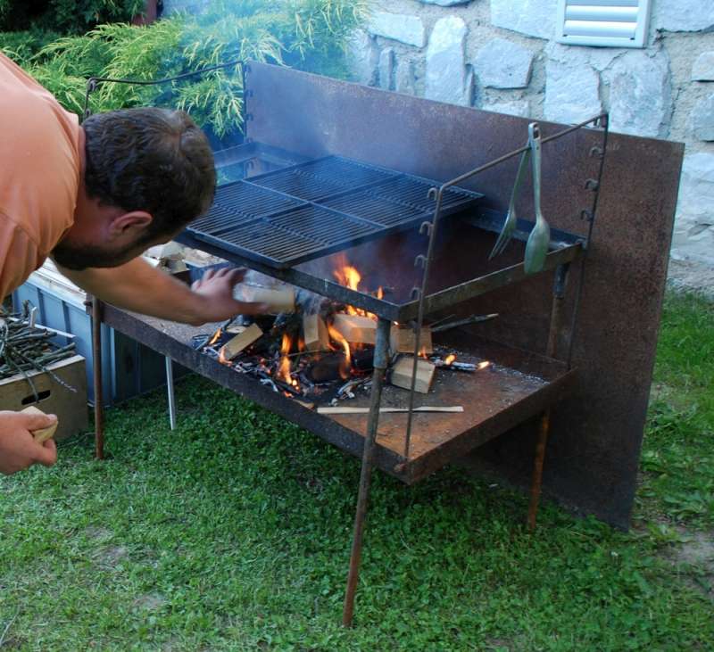 Vezmu pár šťepků ze švestky, třešně... (5-6 ks), na cca 10min namočím do studený vody, zabalím do silného alobalu, udělám pár dírek a hodím to na rošt, zapnu gril. Po cca 10min přidám maso a už to jede. Krásná lehká vůně dřeva je na světě. Samo že to pořád není "ono", ale lepší jak drátem do oka...