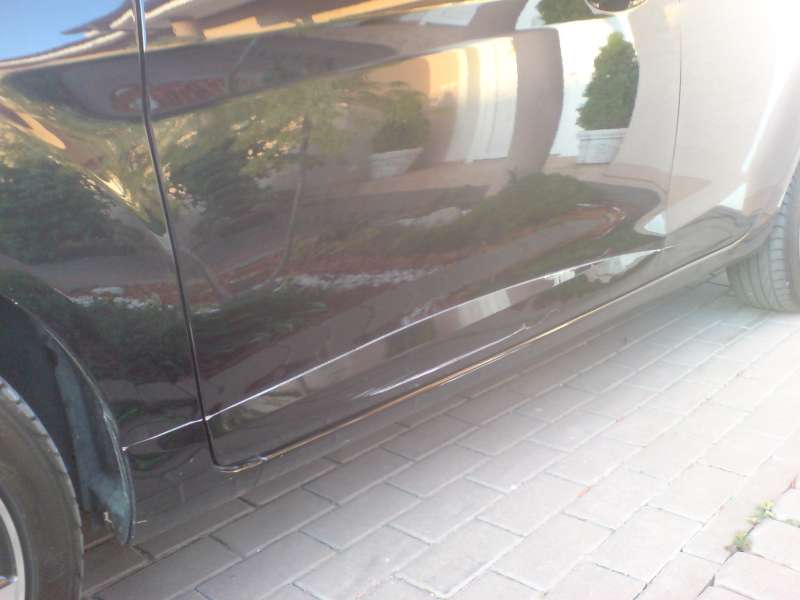 To jak dopadl je patrné z přiložených fotek. Rýha se táhne od zadního světlometu, přes zadní i přední dveře, sloupek u řidiče a končí na krytu motoru.