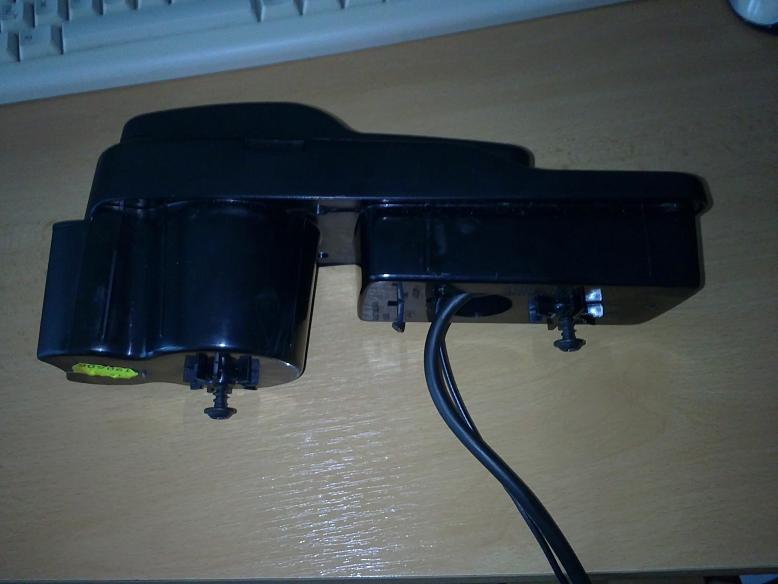Zde je to zezpodu už bez šroubů, ale než jsem ji dostal ven. A tady už je venku: Tak konzole je jinak na dvou kabelech - konektory jsou v předu vpravo středové konzole. Jeden konektor je tlustej s kablíky pro HF a napájení a druhý je pro GSM anténu: Neví někdo co to je za konektor? Nechci to odstřihávat z té konzole, ale rád bych podobný sehnal, abych mohl na originální GSM anténu připojit alarm.