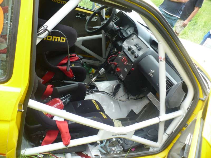 Jezdim jako mitfára. Závodní auto má homologovaný rám a spousty vyvařených částí, který chrání posádku. U některých (závodních) aut je vzpěra homologovaná tutíž použitelná, u některých ne.