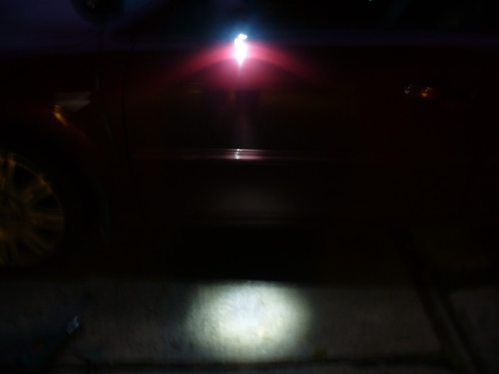 Tak jsem si opět zase trochu hrál.....udělal jsem si osvětlení prostoru u dveří ve venkovních zpětných zrcátkách,,,jsou tam dané vysokosvítíve LED diody-jedna do každého zrcátka,,,a řeknu vám byla to teda krutá práce protože jsem přidával piny do konektoru ve dveřích a ten prostor no ,,,DĚS A HRŮZA,,ještě ted mám ruce pomačkané a pořezané od plechu ALE ten výsledek přece stál za to a vzhledem k tomu že jsem měl reklamované dveře kvuli korozy tak musely byt oddělatelné a proto jsem to dělal přes konektory,někdo by tam možná dal kabel a hotovo ale to jsem nechtěl. NO A TEN VÝSLEDEK STÁL ZA TO ,,, posudte sami ,,,