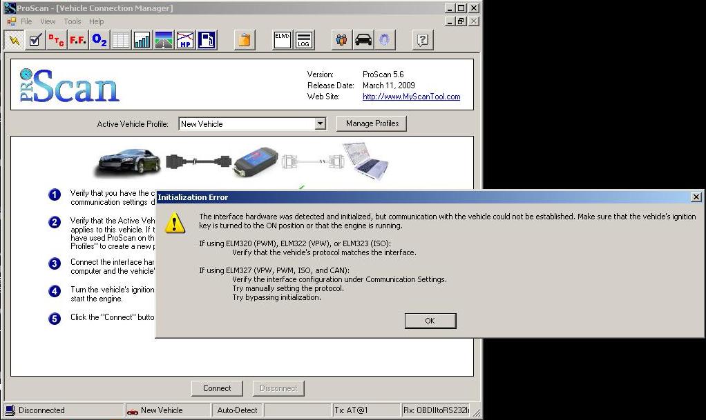 Jede mi ScanMaster, ale třeba ProScan 5,6 mi nějak nejde rozchodit a háže chybu. Neměl by někdo nějaký tip jak na to? :)