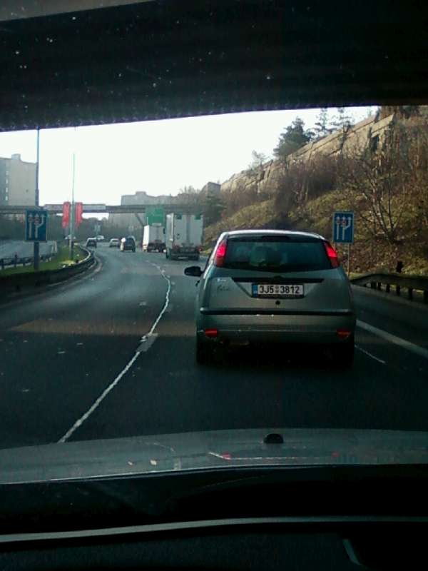 dnes dopoledne cestou z Prahy jedu a koukám kolem sebe na projíždějící auta a co nevidím.Krásné auto značka Ford focus HB a v něm sedící řidička a spolujezdec,ale to není podstatou mého vyprávění.