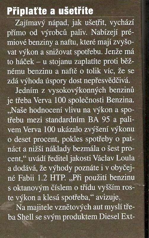 mimochodem se jim podle mne články nepovedly ještě jsem vybral jeden výńatek ohledně premiových paliv a vlivu na spotřebu a výkon