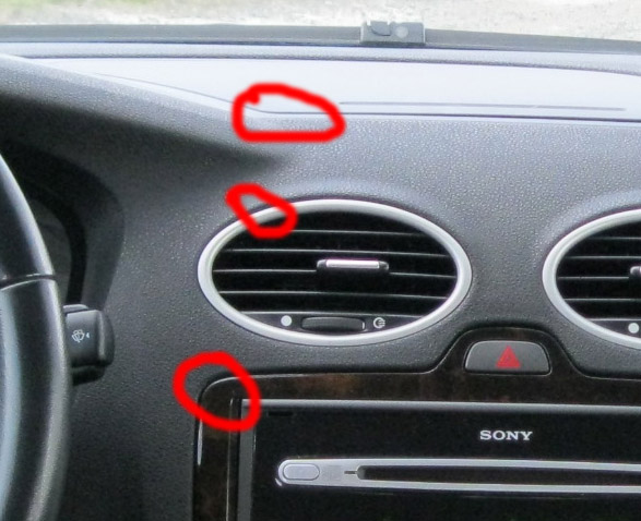Dál řeším, kudy k tomu držáku dotáhnout kabely (napájení + prodlužku z AUX IN). Nemáte někdo nápad? Napadají mě tři možná řešení viz příloha. Ještě mě napadlo, zda by kabely nešli protáhnout vnitřkem té ventilace, ale zatím nevím zda by ten kabel bylo možno dostat pryč z té vzduchové trubice.. Někdo nějaké zkušenosti s tímto? dík